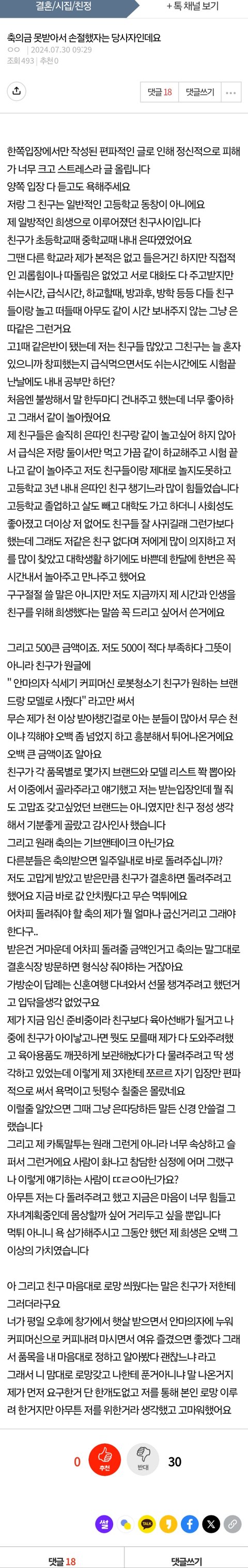 (원본지킴)축의금 못받아서 손절했다는 당사자인데요.