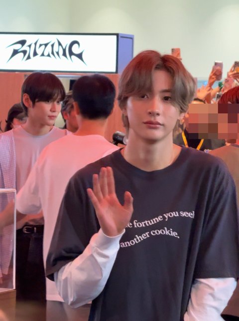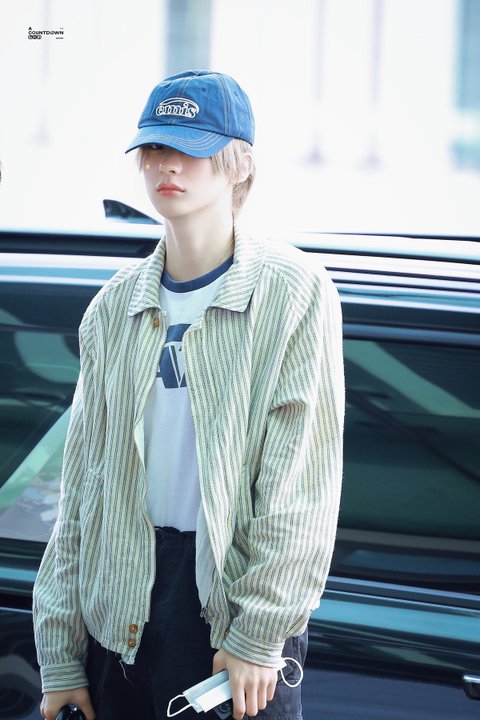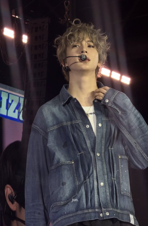 최근 방콕 콘서트 사운드체크 중 애쉬그레이 볶머에 청자켓 코디