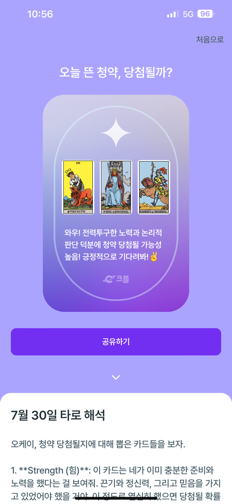 그래서 청약 타로운 본 거 띄워주고 (설득하고 싶어서 이것저것 다해봤습니다 ㅠ)얘도 하라고 한다~~ 이런식으로 재밌게도 얘기해봤는데절대 안할거라고 하더라고요
