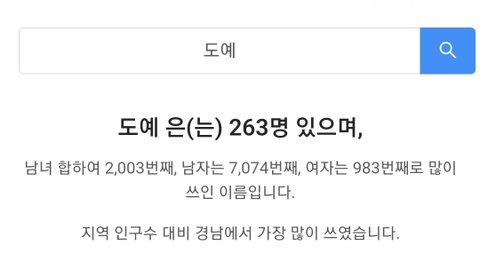 2008년 이후 출생자들 중 263명 있대요~ 참고로 규예,희예가 더 없네요 제 이름은..21명 있다네요;;