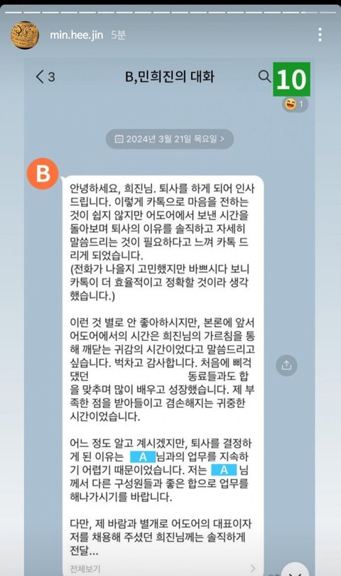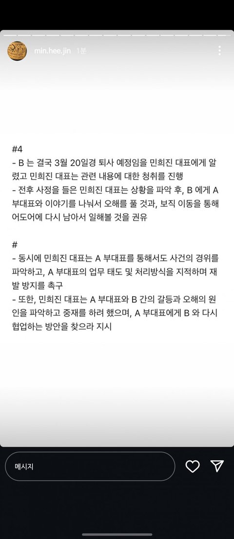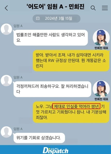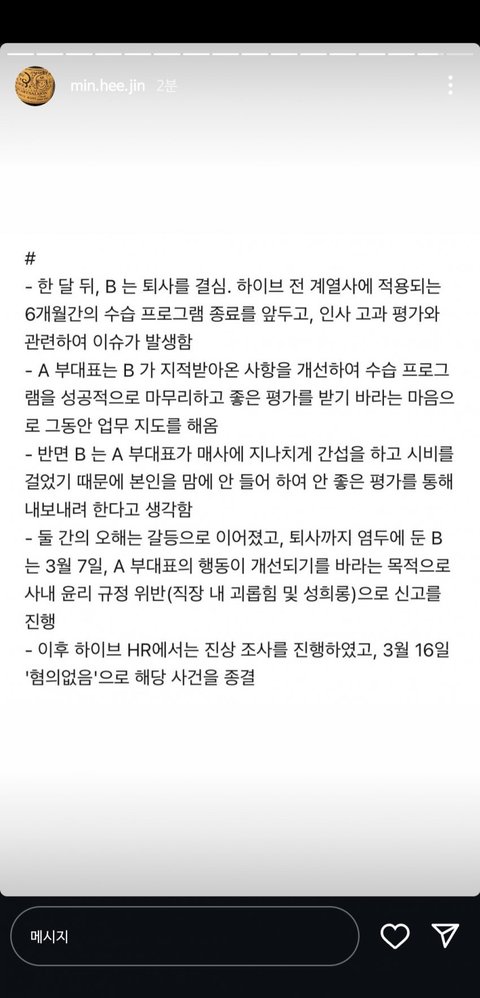 3월 16일 하이브 '경고조치'