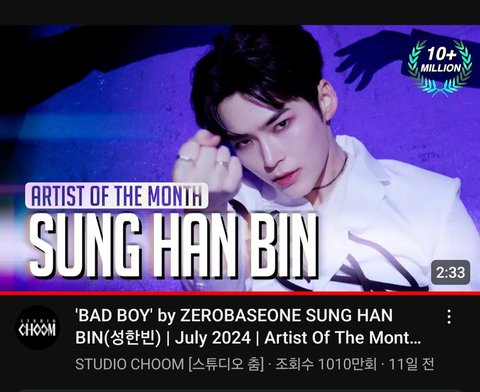 (속보) 제베원 성한빈 아오먼 1000만회달성!!