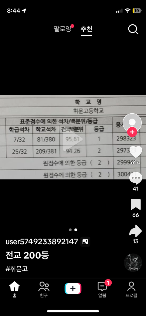 휘문고 전교 200등 수준