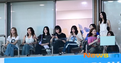 이날 하프타임 공연을 마친 트와이스가 경기를 관전하고 있다.
