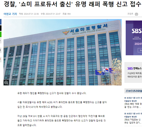 유명 래퍼 이러면서 어그로 끄는 기사겠지 했는데