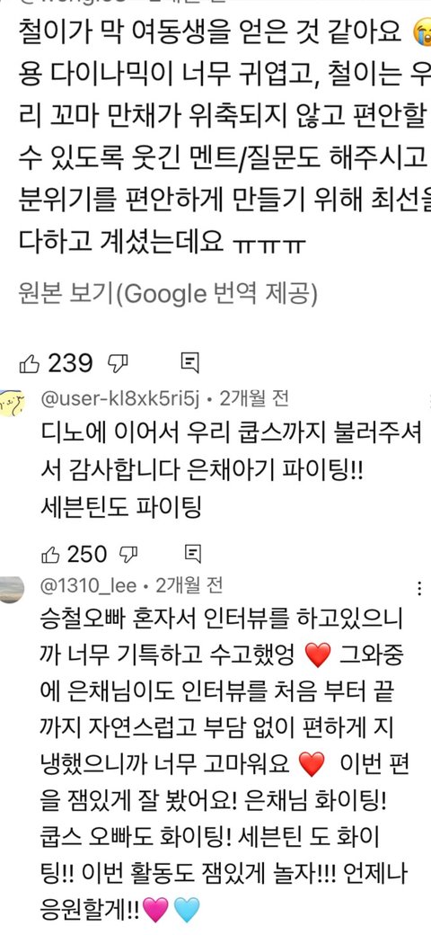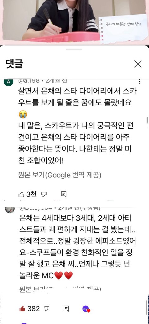 에스쿱스 은채의 스타일기 나갔을 때 일부분을 쿱스 해외팬 인스타에 올렸는데 홍은채가 데뷔 후 지나온 시간들을 세월이라고 말했다고 댓글로 패드립에 인신공격 개쩔게 함 댓글 몇 개 캡처했는데 ㅈㄴ 무서움
