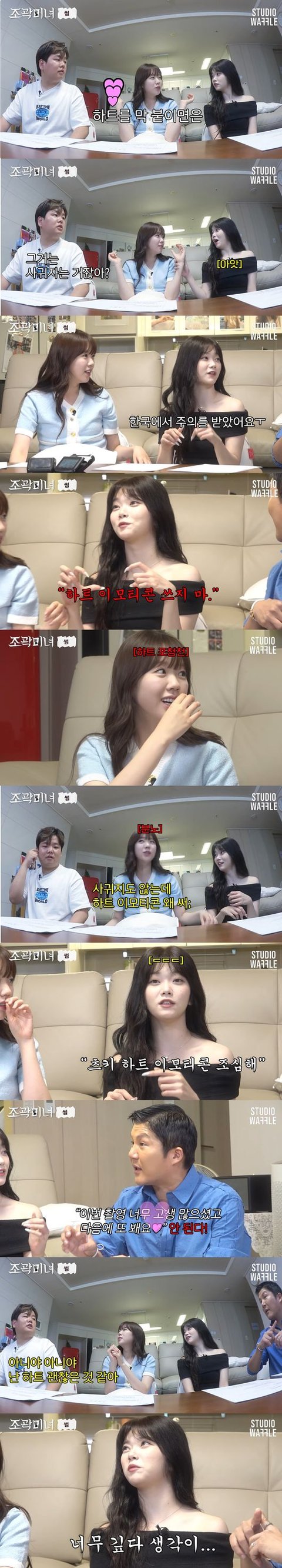 그런데 곽튜브는 "아니다. 나는 하트 이모티콘 괜찮은 것 같다. 오히려 거리두는 느낌이다. 대놓고 하트 보내면 너는 정말 관심 없으니까 하트도 보낼 수 있다 이거인 것 같다"고 말했다. 이를 들은 츠키는 "너무 깊다 생각이"라고 팩폭을 해 큰 웃음을 안겼다.
