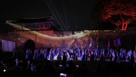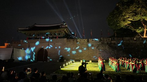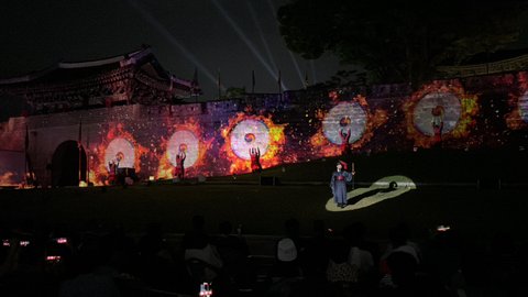 개막식 하는 동안 성벽을 따라 미디어아트가 연출되고