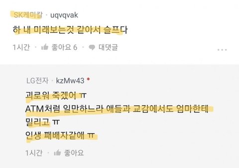 ATM ATM 하는데 난 아빠 좋아함. 왜냐면 아빠가 노력한걸 아니까. 엄마가 노력 안했다는게 아니라 우리 아빠는 바쁘고 피곤한 상황에서도 늘 나한테 최선을 다 하셨음. 잘 못하는 칼질로 복숭아 알레르기 있는 엄마 대신 복숭아 깍아주셨고, 주말에도 출근하느라 힘드신데 골고루 먹어야 한다고 밥 먹을딴 생선 발라주셨음. 늘 바쁘셨고 가난해서 여행같은거 다른 친구들보다 못갔지만 그런 일상이 쌓여서 사랑 받고 사랑 하면서 컸다고 생각함. 자칭 퐁퐁남이다 ATM다 하는 남자들 자식들한테 그런 노력은 해봤는지 궁금함.