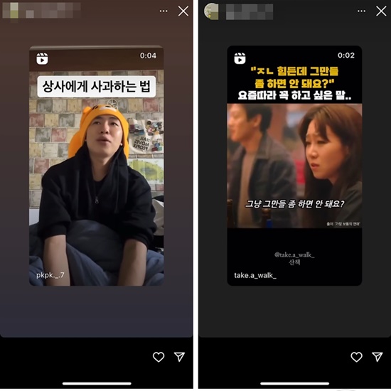 이후 김새론은 '상사에게 사과하는 법', 'XX 힘든데 그만들 좀 하면 안 돼요? 요즘따라 꼭 하고 싶은 말'이라는 제목의 짧은 영상을 올리고 바로 삭제했다.