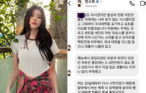 이어 "예능에서 편집되었던 부분과 와전이 되었던 부분은 통장에 2000만-3000만원이 필요했고 당장 가서 지낼 집 값, 생활비는 터무니없이 부족했다"며 "스무 살 때부터 다시 시작이었기 때문에 아르바이트해서 버는 족족 다 유학원에 쏟아야 했기 때문에 밑 빠진 독에 물 붓기였다"고 밝혔다.