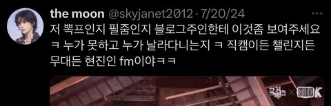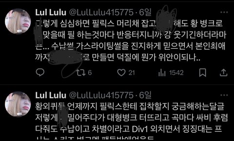 +에휴..회가조아 악개야 창피한줄 알아라ㅉ정곡찔렸는지 답글로 툭 튀어나왔네 그리고 필릭스 팬이 아니라 용복이 팬인척 현진이를 까는 너같은 악개겠죠??찐용복팬인척 그만하고 반성할 생각이나 하렴
