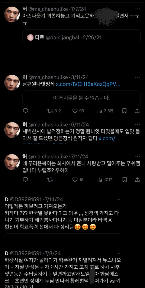 +참고로 D랑 허 애네들도 뽁프인척하는 악개임 애네들도 용복이팬인척 현진이를 계속 까고 원나잇정식이라는둥 정재계 누님 만나서 황레벌떡이라는둥 거리면서 추하게 현진이를 성희롱하고 다님