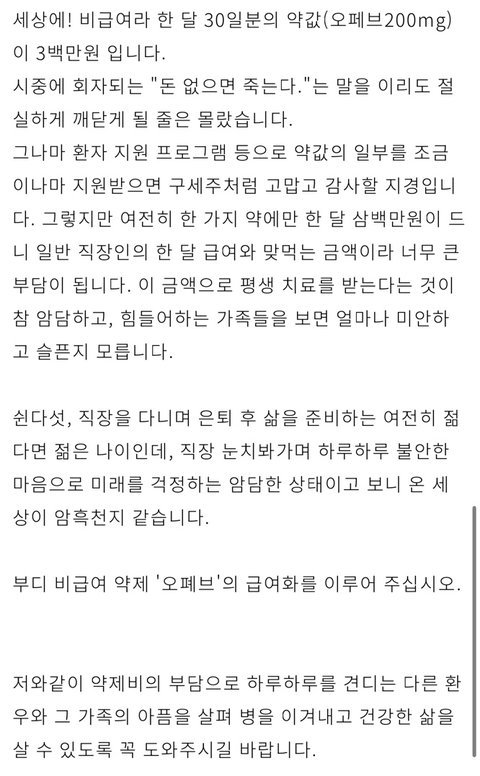 부담이 되다보니 환자를 비롯 그의 가족들의