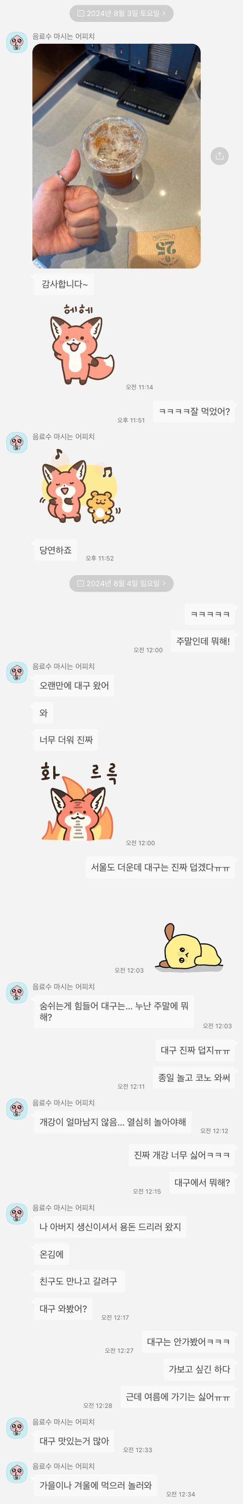 기프티콘 여자가 줘서 걍 적당히 감사하다 하는중. 좋아하면 먼저 어디라고 말했겠지 ㅎㅎ 걍 예의상 대구 놀러와지 같이 가자는것도 아닌데 뭔 관심. 하지만 여자는 무지 티 많이남