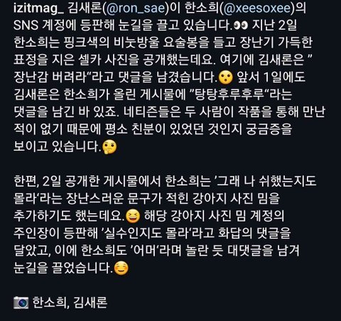 https://www.instagram.com/p/C-MvN5HRoNp/?igsh=MTRkeHViajFkemNpdQ== 둘이 언제부터 친했음..?