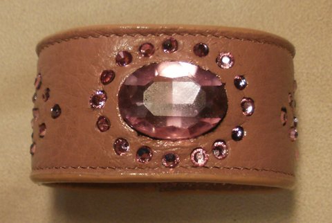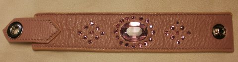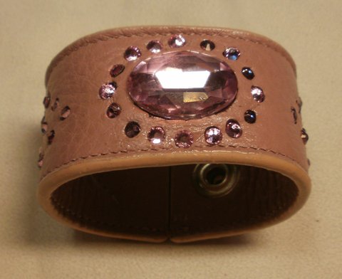 핑크색 엠보싱 가죽에 큐빅으로 장식하여 제작한 가죽 팔찌입니다.(마디샤가죽공예)