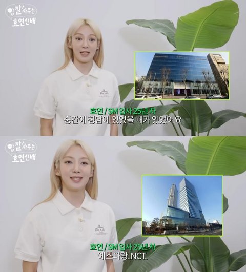 창빈의 말에 효연은 "얼마 안 돼서 또 이사가긴 한다. 더 크게, 넓게"라고 말했고, 창빈은 "엄청 크다고 들었다"라고 전했다.지난 2007년 소녀시대로 데뷔한 효연은 "우리도 점점 우리가 잘 되니까 회사가 더 좋은 곳으로 가더라"라며 SM 사옥을 언급했다.