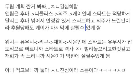 글이 안올라가서 짤로 첨부함 둘다 넘 잘해따...
