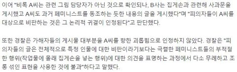 그 때 한남들이 '그 장면 그리지도 않은' 여자 일러레분한테 sns로 온갖 사이버불링 성희롱 해대서 일러레분이 고소했는데