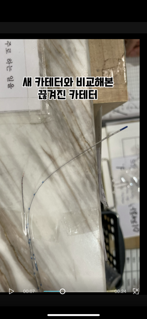 병원측은 카테터가 완벽하지 않아 끊길수도 있답니다. 이전에도 같은 사고가 있었다면서 다른 제품으로 바꾸는 노력도 하지 않았고 그 제품이 제일 좋은 제품이랍니다.