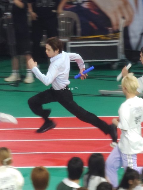 이후 막판에 타 아이돌 멤버 수 비어서 대타로 계주까지 뛰어줬는데 여기서도 미쳤고