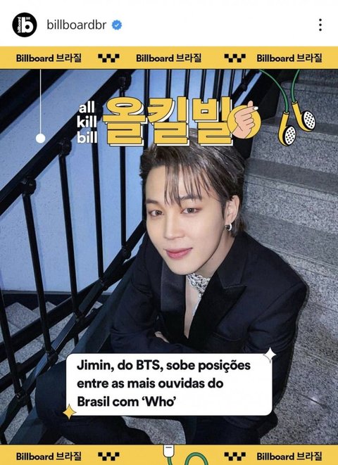 빌보드 브라질 공계에서 한글로 지민이 축하해준 멘트봐ㅋㅋㅋㅋㅋ올킬빌이래ㅋㅋㅋ지민이 축하해