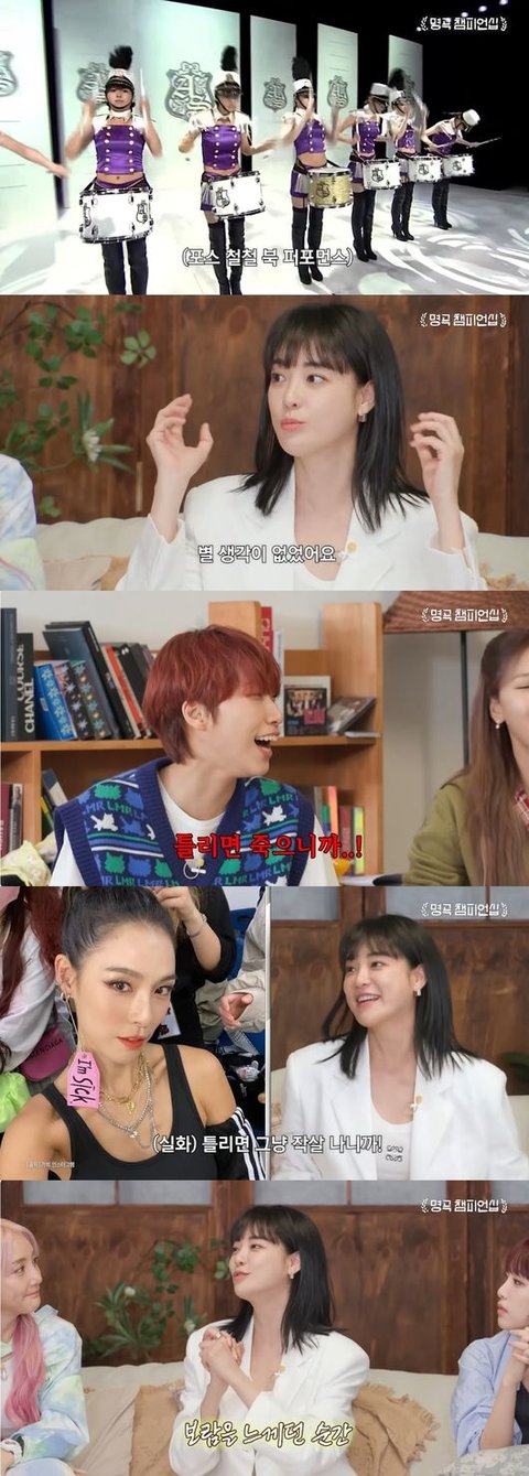 이후 주연은 "'행진북'은 가희 언니 아이디어다. 연습할 때 너무 시끄러워서 민원이 들어오더라. 산 속에서 연습했다"고 전했다.