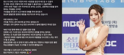 하지만 전소연은 6일 장문의 심경글을 SNS에 올리며 “거짓말 한 적 없다”고 말했다. 재계약 시점은 2025년이라는 큐브와 상반된 입장을 보인 것.