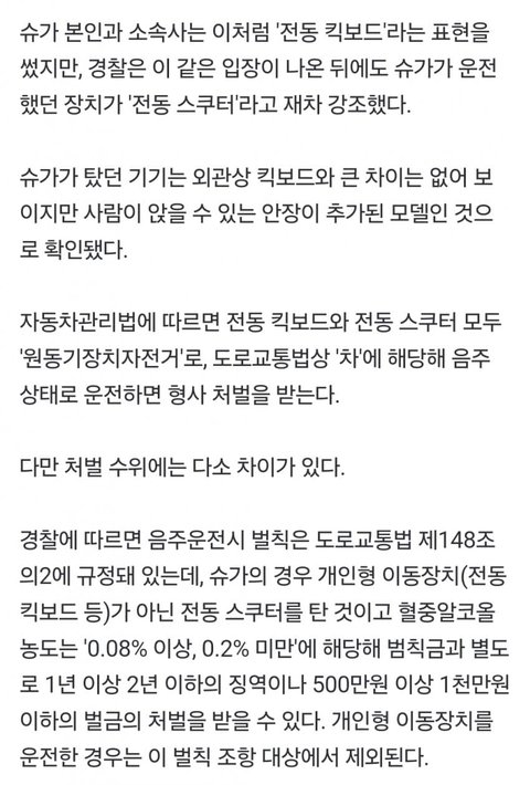 전동 킥보드가아닌 안장이있는 전동스쿠터를 타고있었음