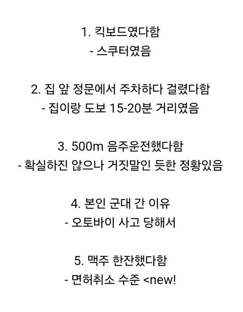 + 경찰에게 맥주 한 잔 마셨다고 했으나 실제로는 면허 취소 수준으로 음주함