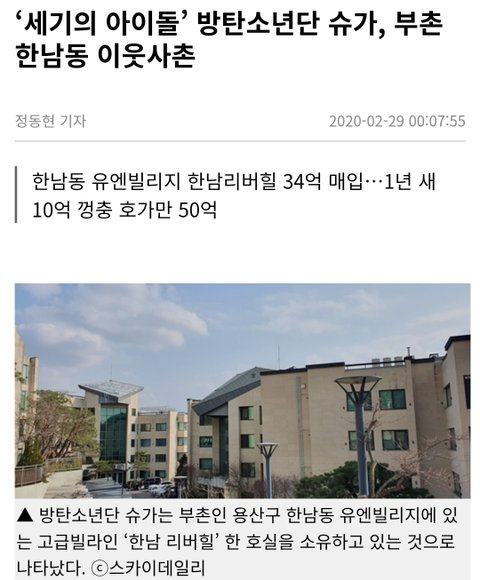 그리고 슈가가 발견된 나인원한남 부근은 슈가의 집도아님