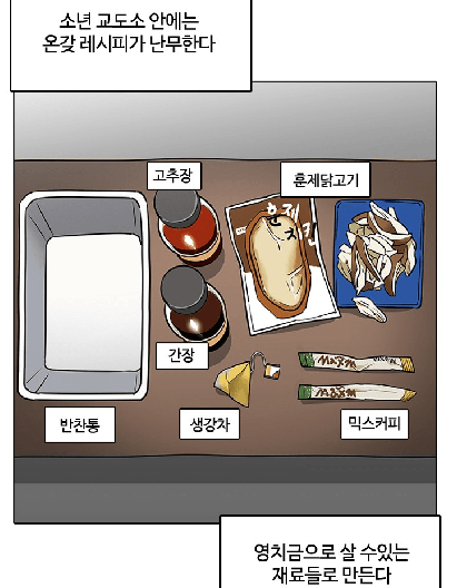 교도소에도 매점이 있어서 죄수들이 돈(영치금) 내면 생각보다 훨씬 다양한 음식 사먹을수 있음 (구매물 신청서에 체크해서 내면 교도관이 사다주는 방식)
