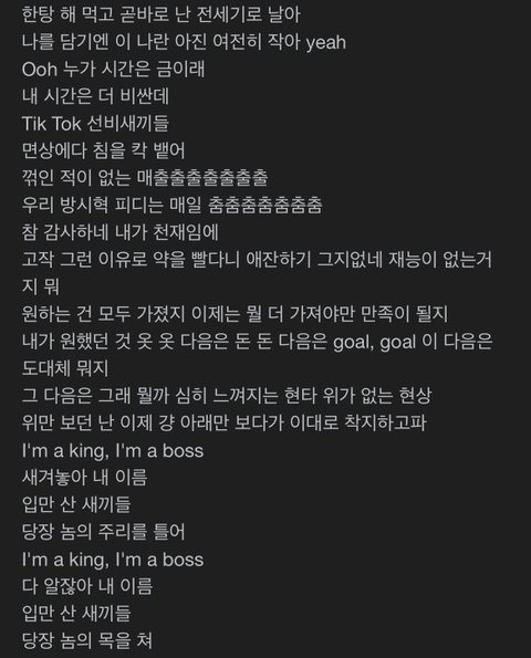 이런 가사를 좋다고 빨아주는 아미들 전혀 이해가지 않았음.. 누가봐도 오글거리고 상태 이상해보이는데 이상하다고 한마디 하면 아미들이 죽자고 달려들었지ㅋㅋ 하여간 팬들이 문제임