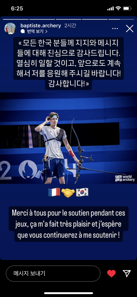 프랑스 양궁남 아디스 또 한국어로 스토리 올림
