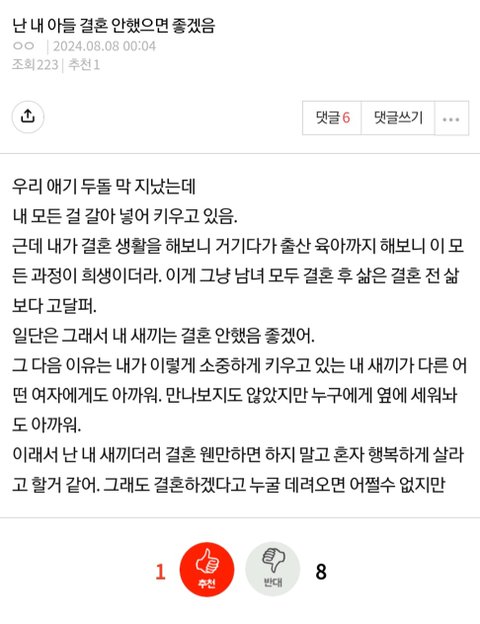 본인도 남의 귀한 아들하고 결혼해서 애 낳고 살면서 헛소리는..