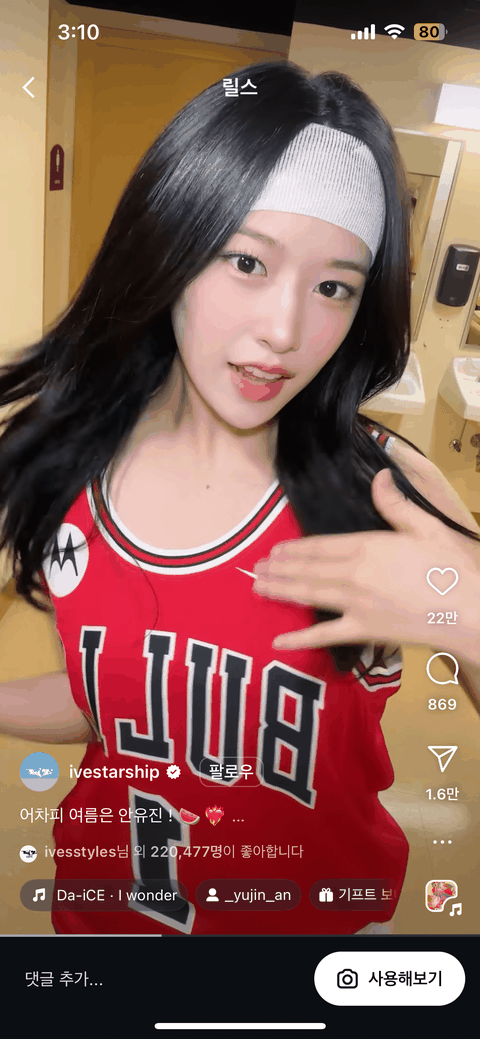 어제 인스타에 뜬 릴스 본 사람?진짜 너무 예뻐서 헉소리 나옴 ㅋㅋㅋㅋNBA 시카고불스 져지도 찰떡이네.. 이거 파는건가