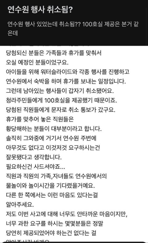 애들학원보내질말까요?? 당연한거 아님?? 지금 지네들 뭐사먹을돈도 없다며?? 그럼 학원 안보내는게 맞는거 아닌가?? 그리고 뭔 국가재난이야.. 이게.. 아파트관리사무실에서 해결해야지.. 입대위는뭐했냐?? 스프링쿨러 고장났다고 얘기했으면 빨리빨리 알아보고 수리했어야지.. 수선충당금 다 딱아썼냐?? 그저 쳐모여서 모임했다는 명목에 돈빼갈 생각만 하지말고 저런거 수리가 완료됐는지부터 확인했었어야지..참.. 가지가지한다.. 진짜.. 내일이라 생각해도 국가재난?? 이건 좀 아니다.. 진짜..