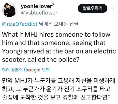 현재 해외팬들이 민희진이 주술사를 이용해 '슈가를 미행했다' '집 앞에 경찰이 왜 있냐... ' 시전중 Mhj...??ㅋㅋㅋㅋ