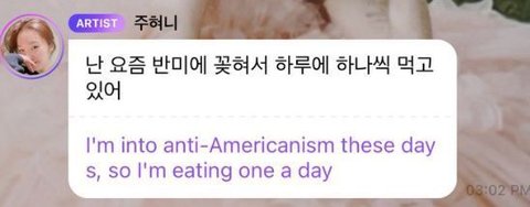 하지만 자동 번역 프로그램은 반미의 뜻을 반미주의(Anti-Americanism)로 번역했고, 졸지에 아이린은 반미주의에 심취한 아이돌이 됐다.