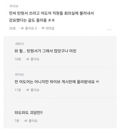 일반 직원들한테 탄원서 쓰라고 회의실로 불렀대