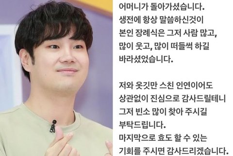 이어 "저와 옷깃만 스친 인연이어도 상관없이 진심으로 감사드릴 테니 그저 빈소 많이 찾아주시길 부탁드린다. 마지막으로 효도할 기회를 주시면 감사하겠다"라고 덧붙였다.
