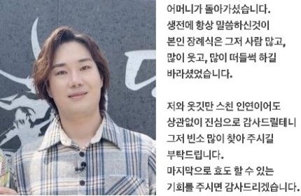 이어 "저와 옷깃만 스친 인연이어도 상관없이 진심으로 감사드릴 테니 그저 빈소 많이 찾아주시길 부탁드린다. 마지막으로 효도할 기회를 주시면 감사하겠다"라고 전했습니다.