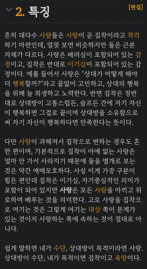 집착 나무위키 찾다가 사랑의 정의 알게됌 ㄷㄷ