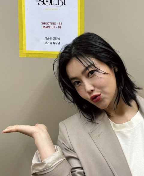 사진 속 솔비는 하얀색 티셔츠에 베이지색 재킷을 입고 단정한 패션을 소화한 모습. 단발머리를 깔끔하게 넘긴 솔비는 뚜렷한 이목구비와 날렵해진 턱선으로 시선을 모은다.