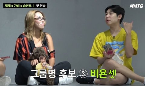 승헌쓰는 "저희가 처음에 가성비 싹쓰리로 얘기하지 않았냐. 우리는 애쓴다는 의미로 '애쓰리' 어떻냐"라고 밝혔다. 재재는 "가비가 비욘세를 너무 좋아하고, 우리게 셋 아니냐"라며 '비욘셋'을 밀었다. 가비는 "우리 세 명 다 고집이 너무 세고, 줏대가 세다고 해서 '줏댐므'"라고 하기도. 결국 팀명을 못 정하고 실명으로 표기했다고.