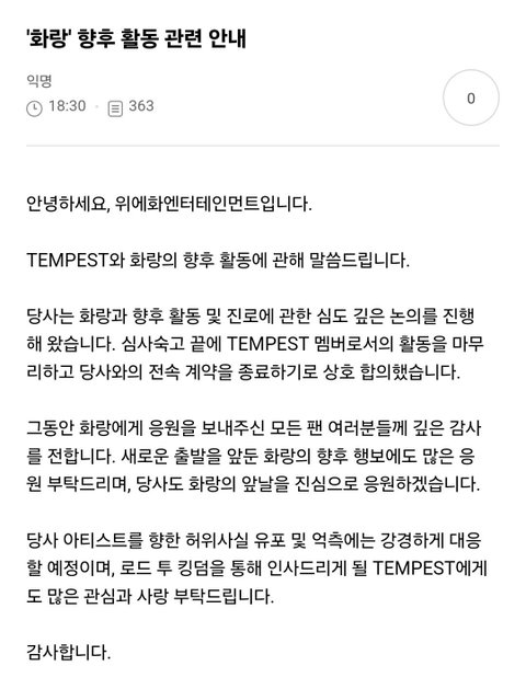 템페스트 화랑 팬한테 클럽간 거 들키고 다음 영통팬싸때 그 팬이 클럽 앞에서 봤다니까 “아 진짜요?” 시전함 그러고 활중하다 결국 팀 탈퇴