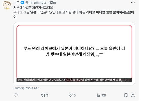 걍 평소에 많이 안 하면 된다고 하면 되지 요시물고 늘어지기ㅋㅋㅋㅋㅋ하여간 인기하위권새끼 애미들은 열등감에 미쳤다니까 요시만큼 한국팬들 신경쓰면서 라방하는 애가 어딨다고ㅋㅋㅋ