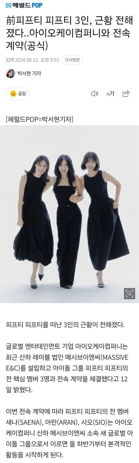 前피프티 피프티 3인, 근황 전해졌다..아이오케이컴퍼니와 전속 계약(공식)