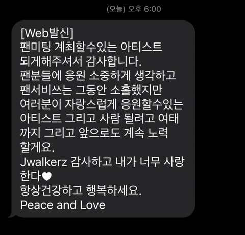 공연 끝나고 팬들한테 고마움을 문자까지 보내주면서 표현해주면